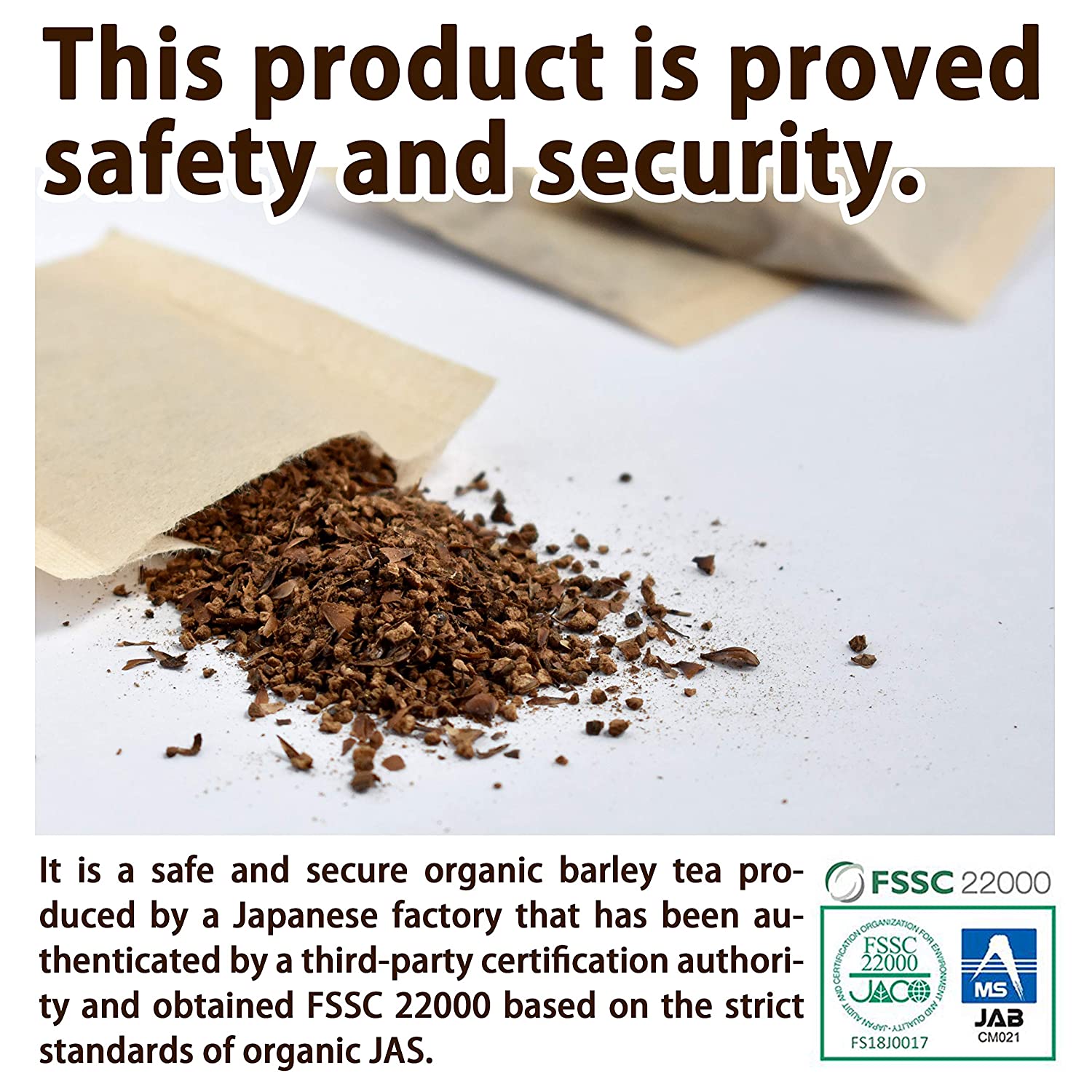 - It is a safe and secure organic barley tea produced by a Japanese factory that has been authenticated by a third-party certification authority and obtained FSSC 22000 based on the strict standards of organic JAS.